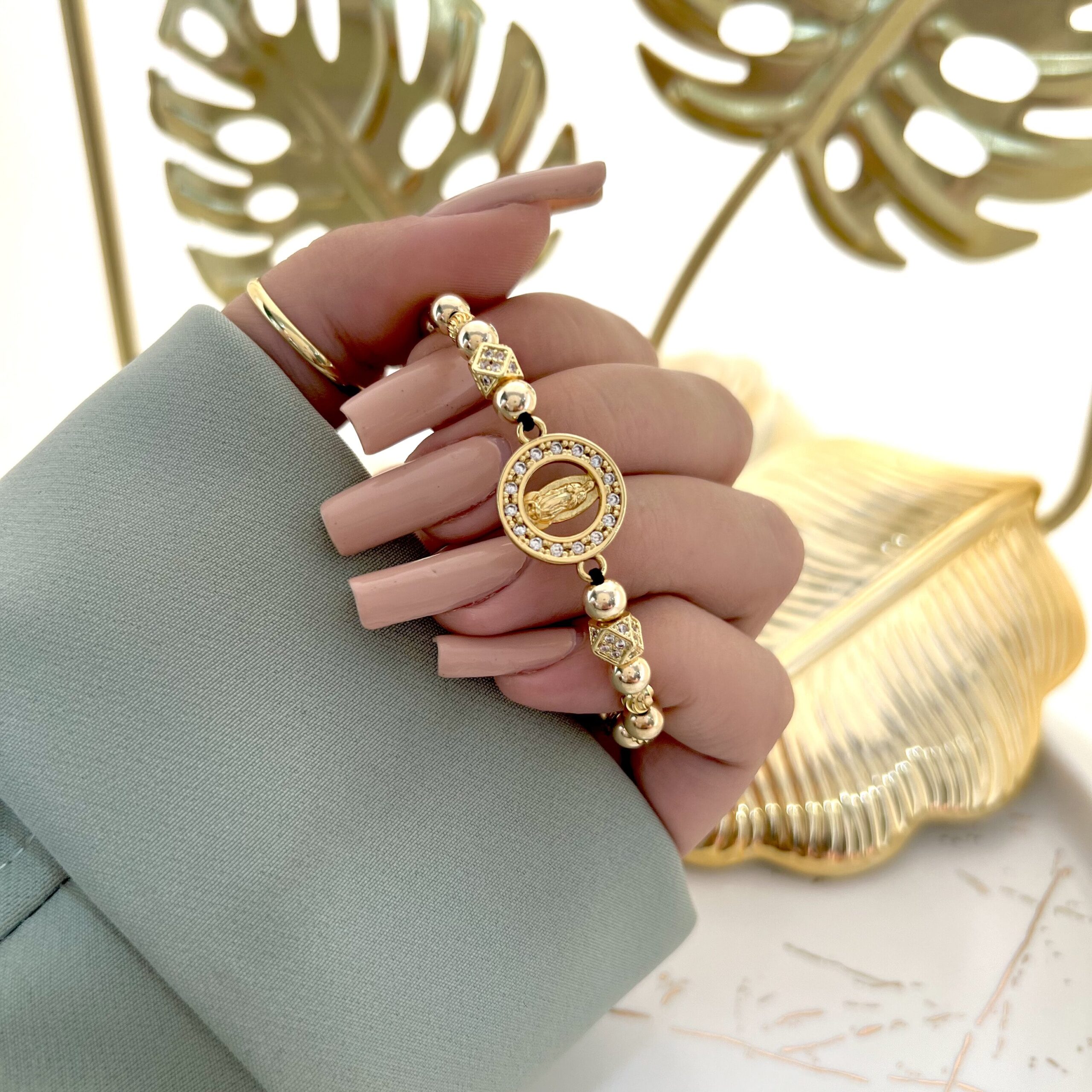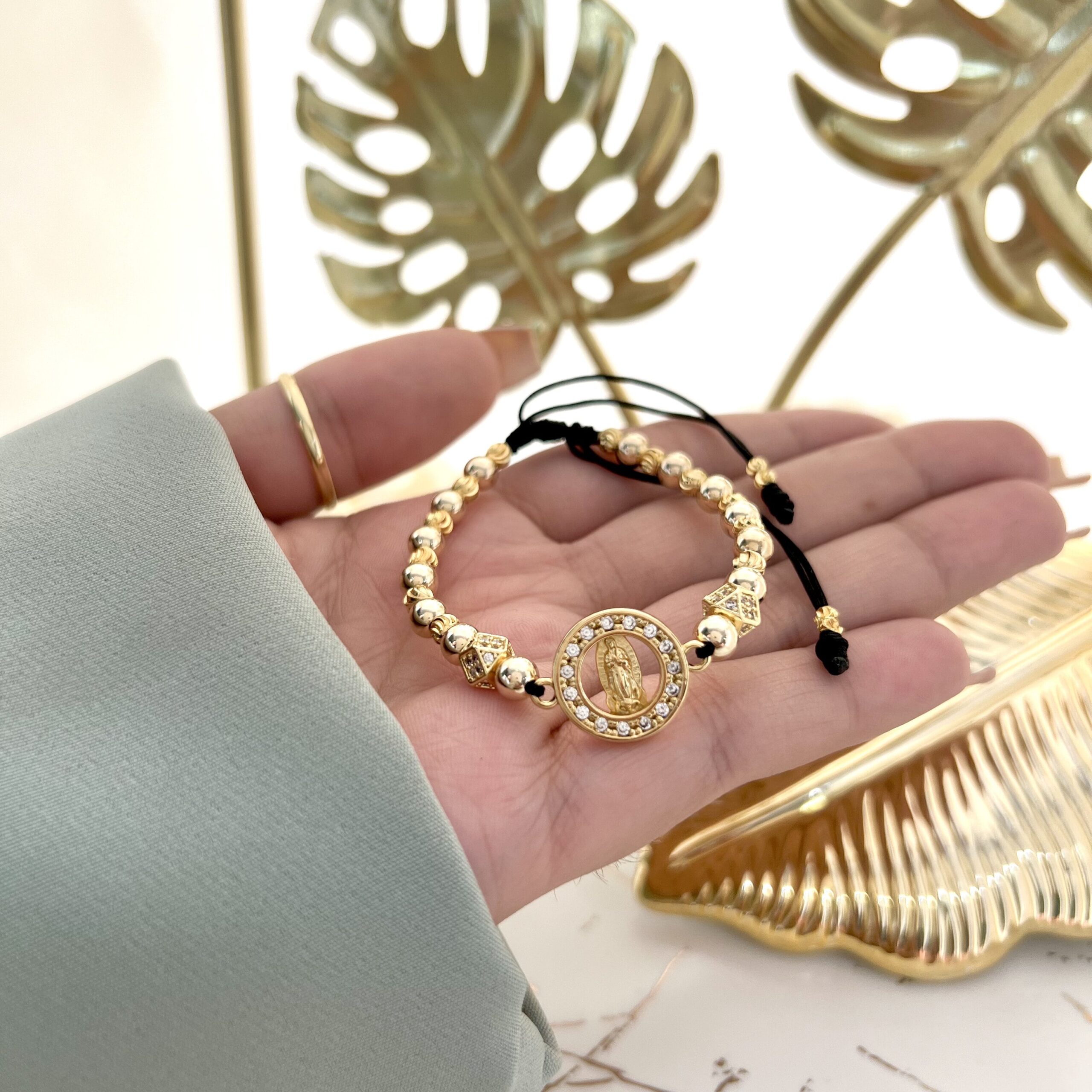 La Pulsera Luxury LP013 es una obra maestra diseñada para quienes valoran la unión de lo espiritual y lo exclusivo. Su herraje Guadalupe con circonias actúa como el corazón de la pieza, evocando protección y devoción, mientras que el herraje mini rombo añade un toque refinado y moderno. La combinación de 14 balines lisos de 8mm y 12 balines italianos de 6mm en oro laminado 18K crea un juego de luces y texturas que irradia lujo en cada movimiento. Las punteras de balín italiano de 4mm aseguran un acabado impecable, y el resistente hilo terlenca negro proporciona un ajuste cómodo y duradero. Ideal para realzar cualquier look, esta pulsera es la elección perfecta para quienes desean expresar su fe y estilo con un toque de elegancia única. ¡Atrévete a lucirla y deja que su inspiración divina transforme tu imagen!