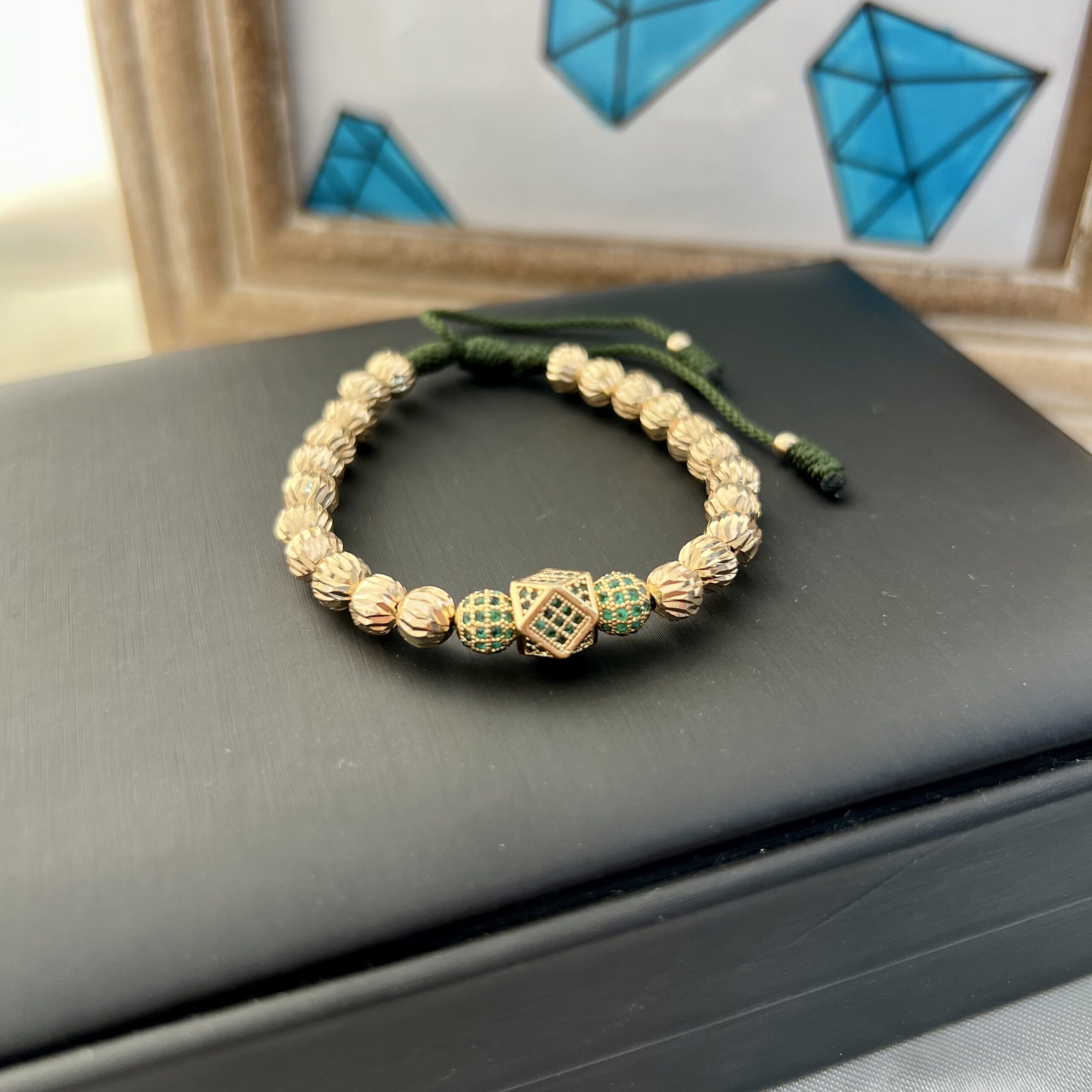 La Pulsera Luxury LP014 es una auténtica declaración de estilo para quienes buscan un accesorio audaz y refinado. Su herraje rondel rombo de 8mm, engalanado con circonias, actúa como el centro de atención, ofreciendo destellos elegantes en cada movimiento. Dos unidades del herraje bola de fuego de 8mm inyectan energía y dinamismo, simbolizando la pasión y el poder del fuego. La pieza se enriquece con 22 balines diamantados macizos de 8mm en oro laminado 18K, que capturan la luz de manera impactante, mientras que las punteras en balín liso de 4mm aseguran un acabado impecable y sofisticado. Finalmente, el hilo terlenca en verde militar no solo garantiza un ajuste perfecto, sino que también añade un carácter robusto y moderno a la joya. Ideal para realzar cualquier atuendo, esta pulsera es la elección perfecta para quienes desean expresar su fuerza y estilo único. ¡Atrévete a destacar con la Pulsera Luxury LP014 y deja que su brillo y actitud transformen tu imagen!