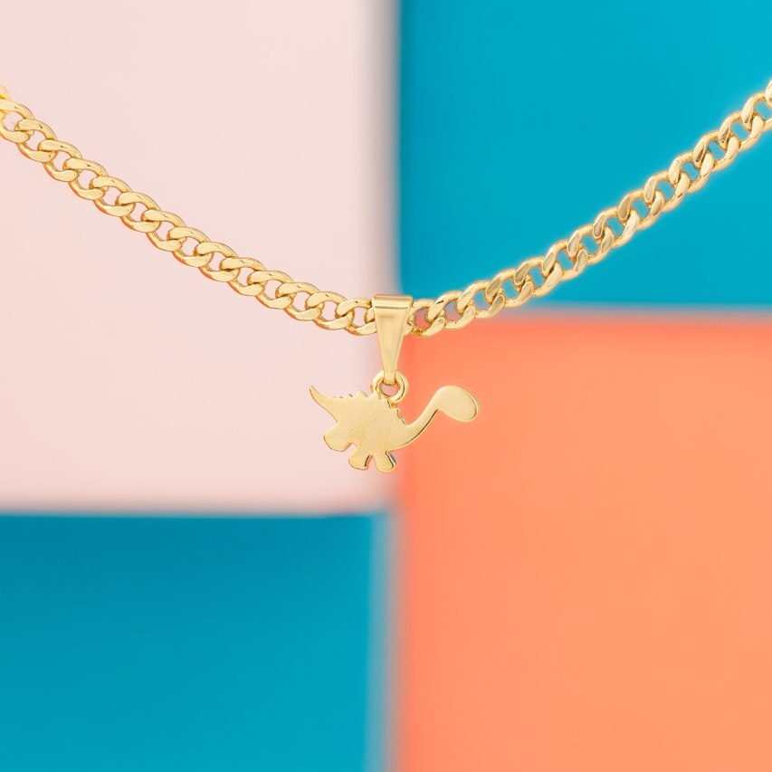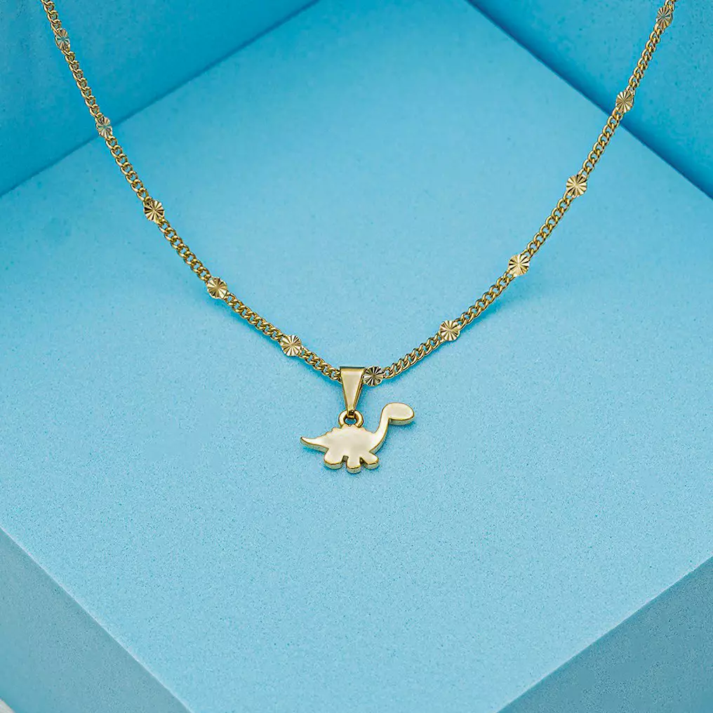 El Dije Dino Baby en oro laminado 18K es una pieza inspirada en la magia de los dinosaurios y la ternura de una cría. Su diseño delicado y encantador lo convierte en el accesorio ideal para quienes buscan un detalle único que refleje su espíritu aventurero y su amor por estas criaturas prehistóricas.
