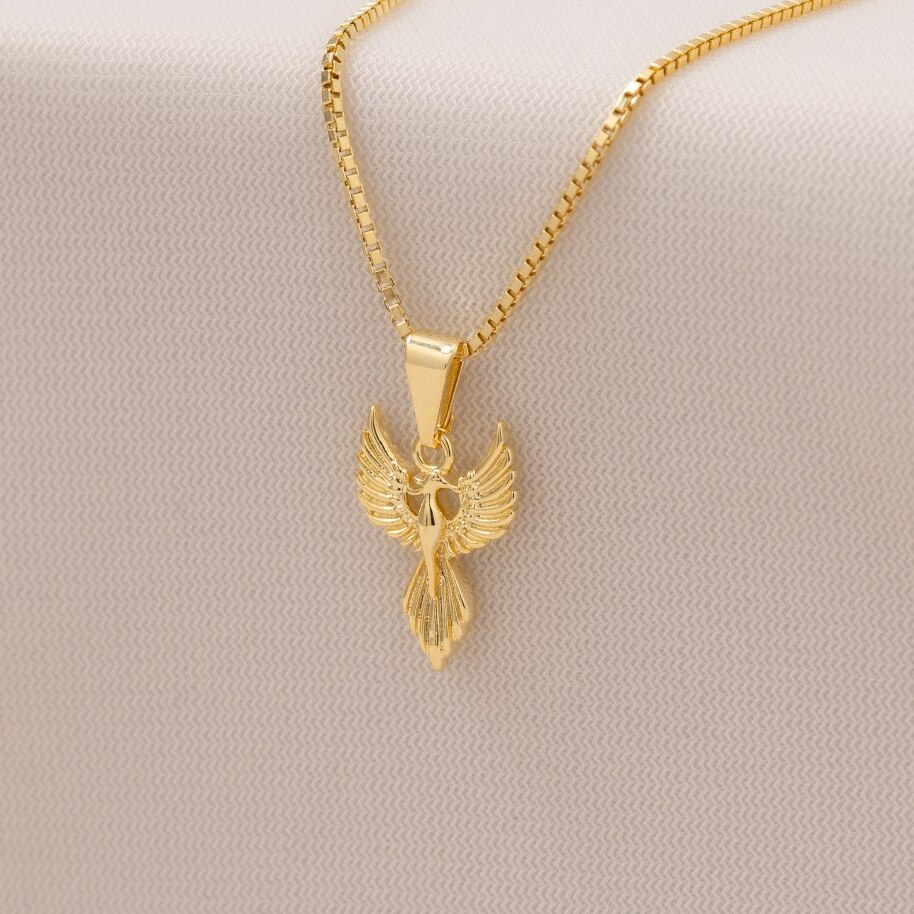 El Dije Fénix en oro laminado 18K representa la leyenda del ave fénix, un ser mitológico que renace de sus propias cenizas. Esta majestuosa criatura simboliza resiliencia, poder y renovación, convirtiendo esta pieza en un accesorio especial para quienes han superado desafíos y creen en la fuerza de la transformación.