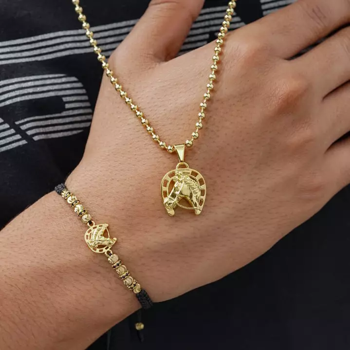 El Dije Herradura y Caballo Fortune en oro laminado 18K es el símbolo perfecto de prosperidad, protección y triunfo. Su diseño elegante combina la fuerza del caballo con la fortuna de la herradura. 🏆💖