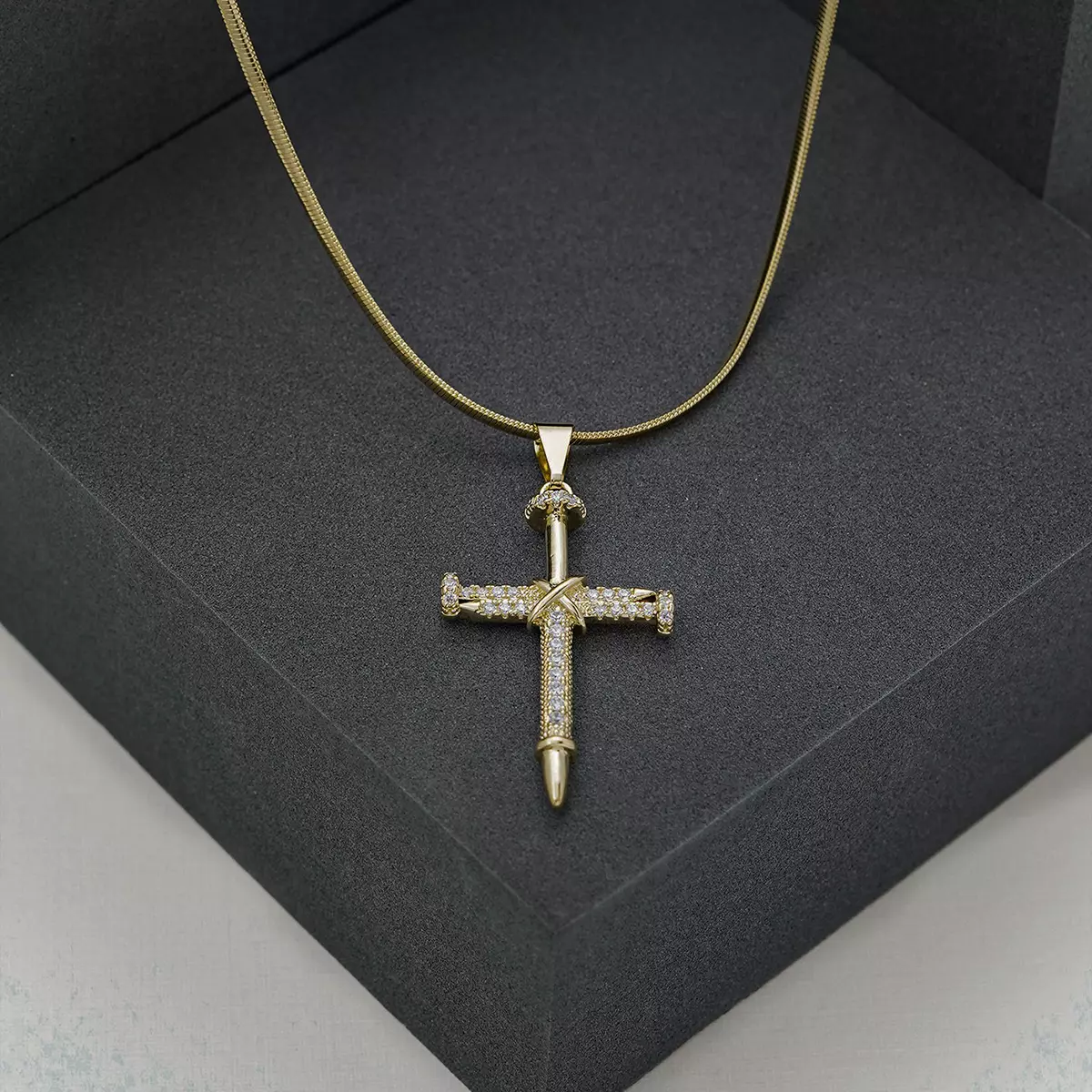 🔨 Dije Clavo Circonias Cristal – Fuerza y brillo en un diseño vanguardista. ✨