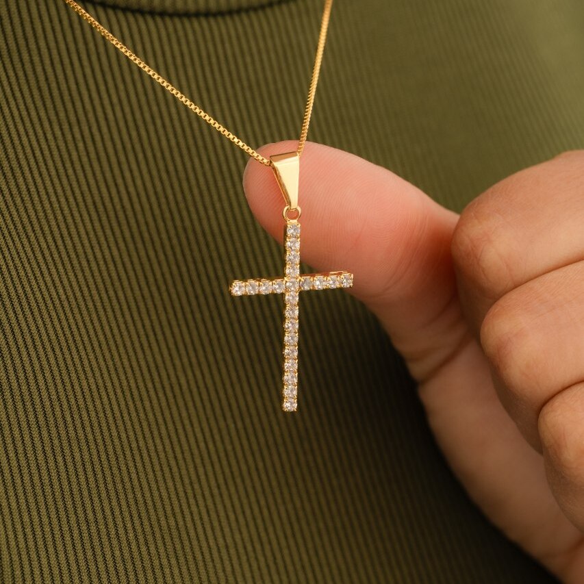 ✔ Diseño de cruz con circonias de alto brillo.