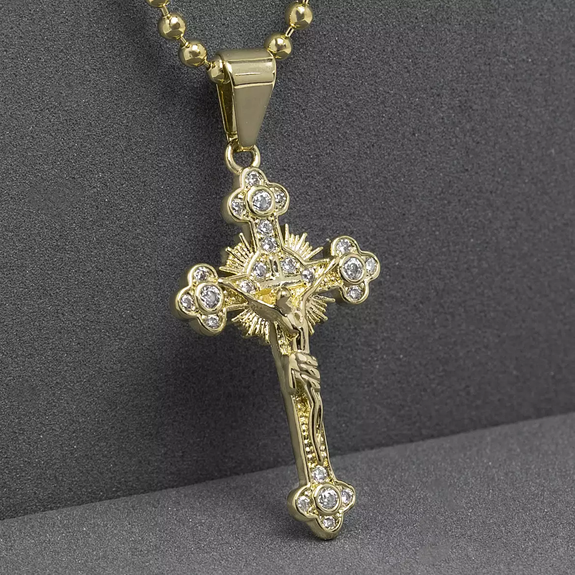 Este hermoso dije con la imagen de Cristo crucificado es una expresión de fe y devoción. Fabricado en oro laminado 18K, su diseño meticuloso resalta cada detalle de la figura sagrada, transmitiendo paz y fortaleza espiritual. Una joya especial para quienes buscan un accesorio con significado profundo y elegante.