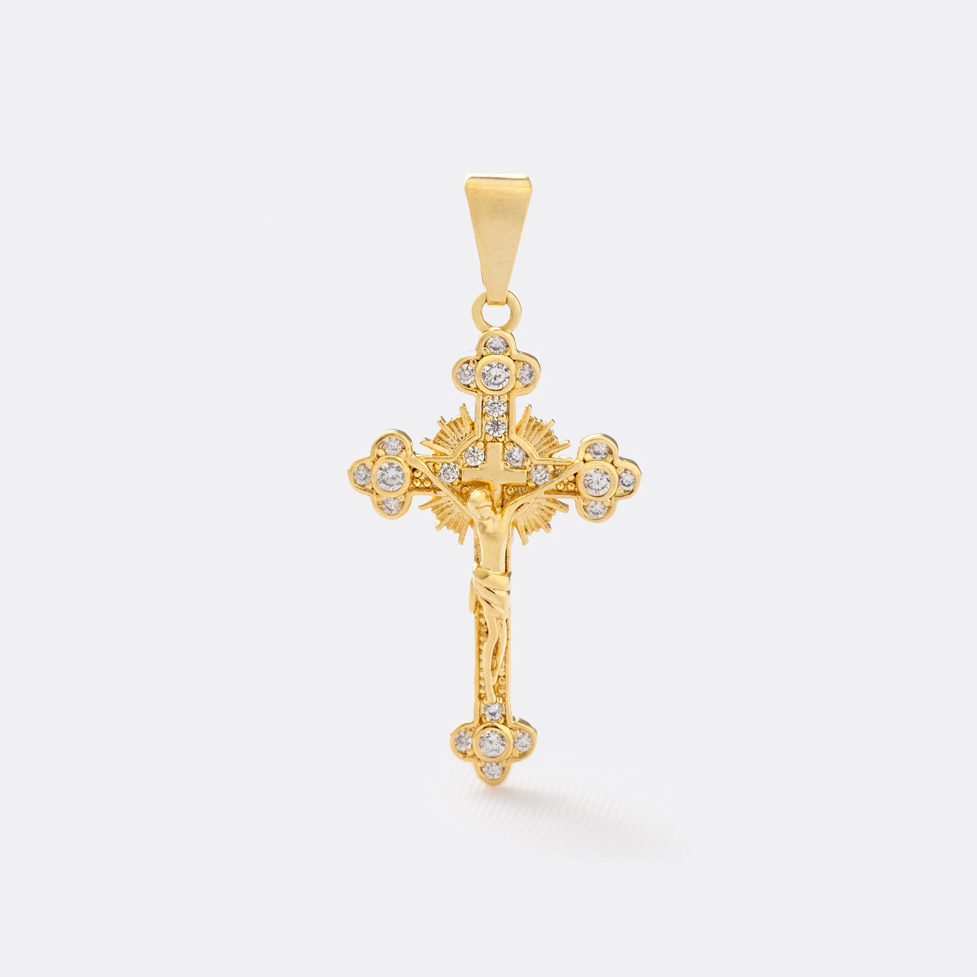 Este dije representa a Cristo crucificado en un diseño detallado y elegante, elaborado en oro laminado 18K. Una joya con un profundo significado espiritual, ideal para quienes desean llevar consigo un símbolo de fe y protección.