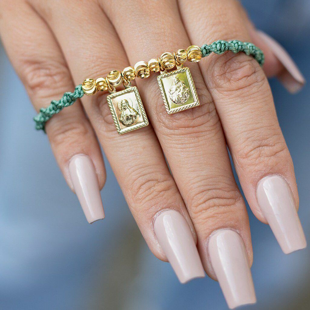 Este hermoso dije escapulario es más que una joya, es un símbolo de devoción y protección que acompaña en cada paso. Elaborado en oro laminado 18K, su diseño detallado refleja la esencia de la tradición religiosa con un toque de sofisticación. Su tamaño ideal permite llevarlo cómodamente en cualquier ocasión, combinándolo con otras cadenas o usándolo como pieza principal.