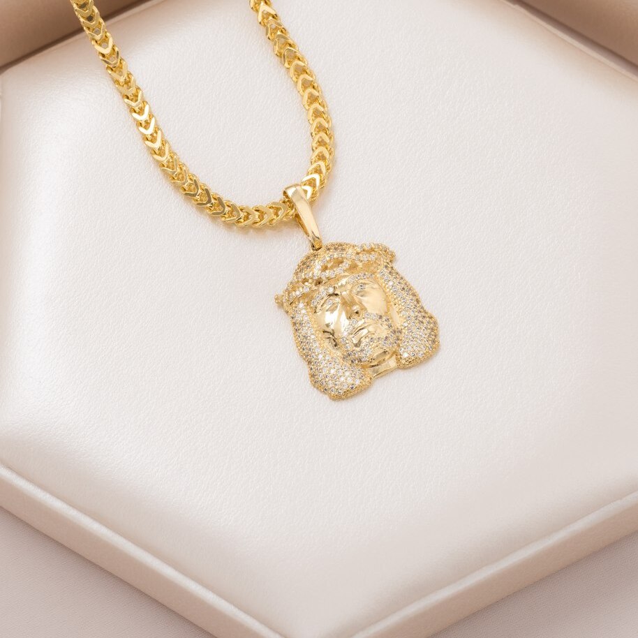 💎 Dije Rostro Jesucristo Swarovski Circonias – Fe y brillo en una joya única ✨