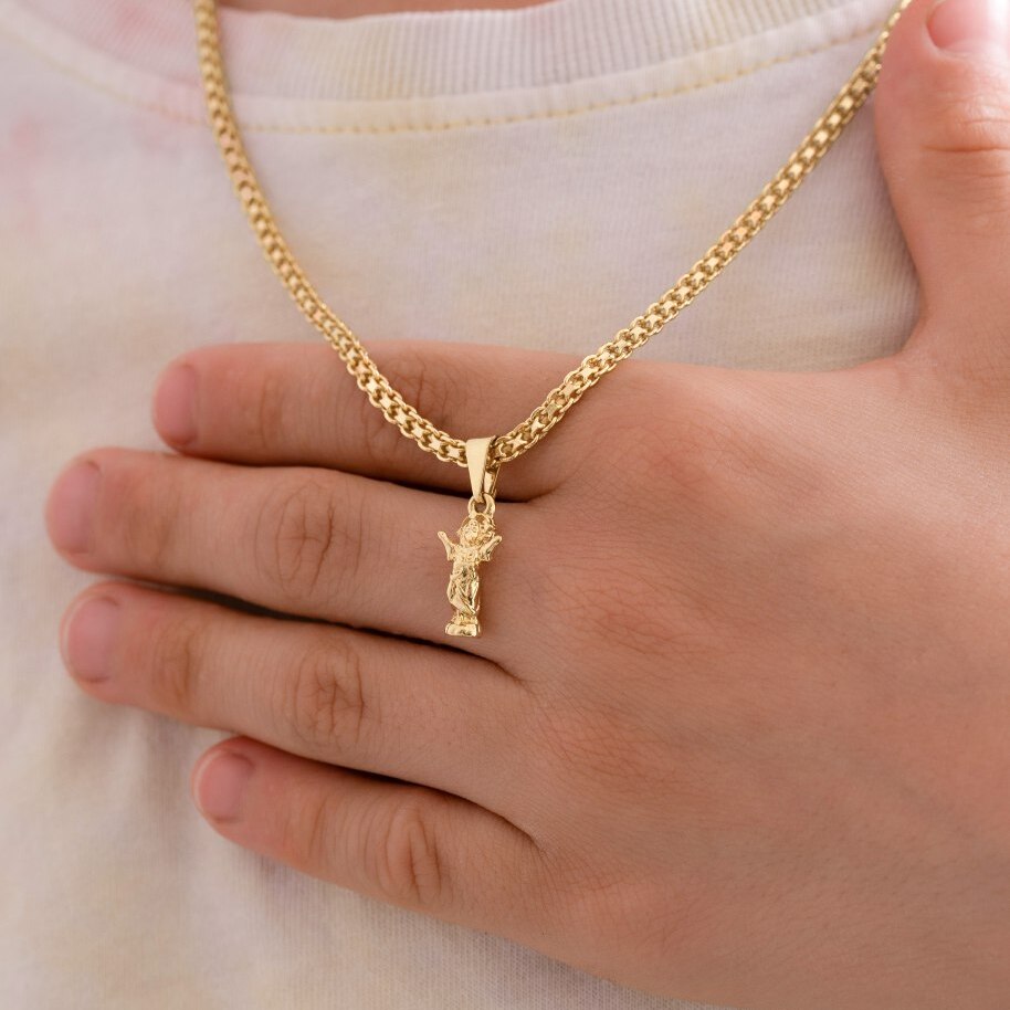 Este hermoso dije con la silueta del Divino Niño, elaborado en oro laminado 18K, es un símbolo de amor, protección y esperanza. Su diseño delicado y elegante lo convierte en la joya perfecta para quienes buscan llevar consigo una bendición especial.