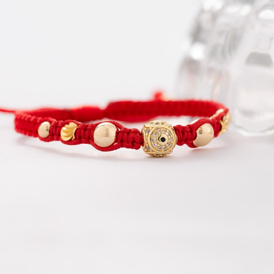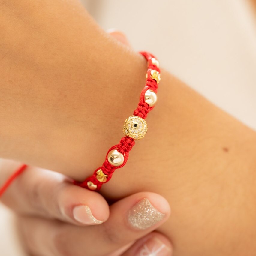 Un diseño impactante con circonias resplandecientes y un ojo protector en el centro. Fabricado en oro laminado 18K, ideal para darle un significado especial a tus creaciones.